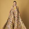 Maxi printed cotton A line dress with contrast backside