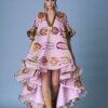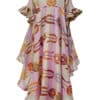 V neck printed cotton dramatic flutter sleeves dress