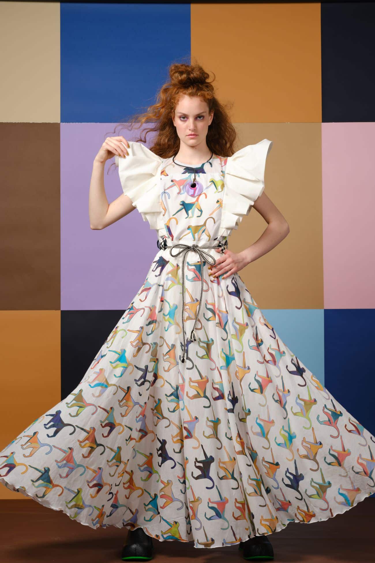 – Hyperbolic frill sleeves;