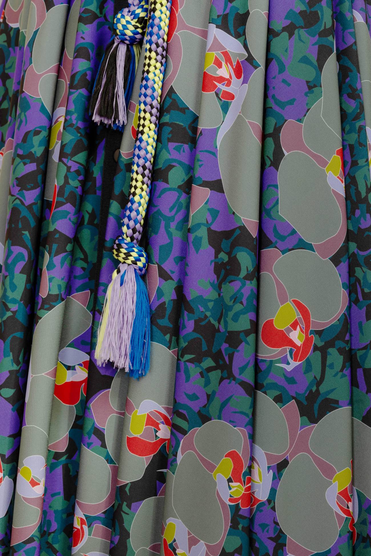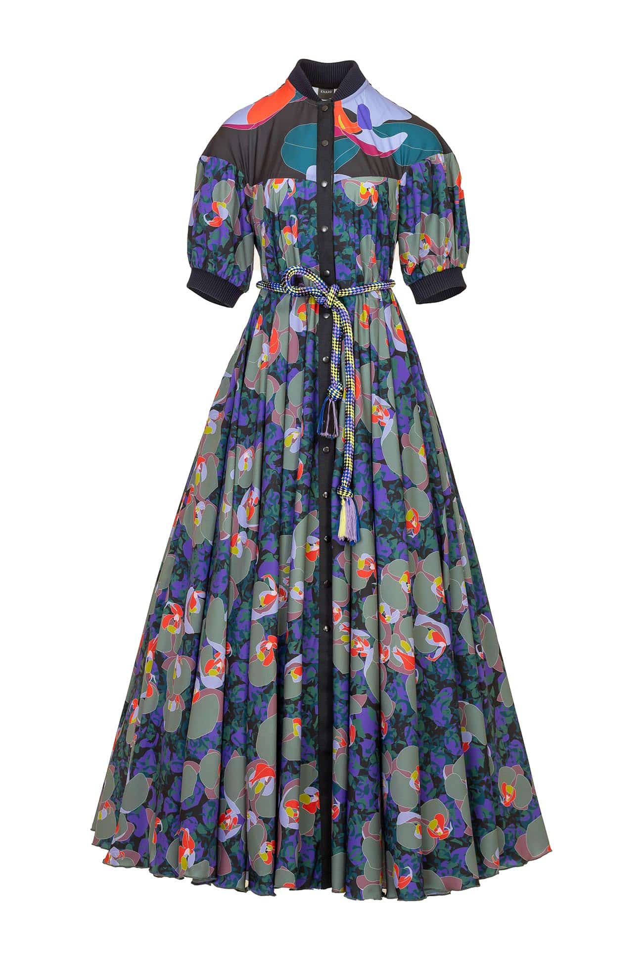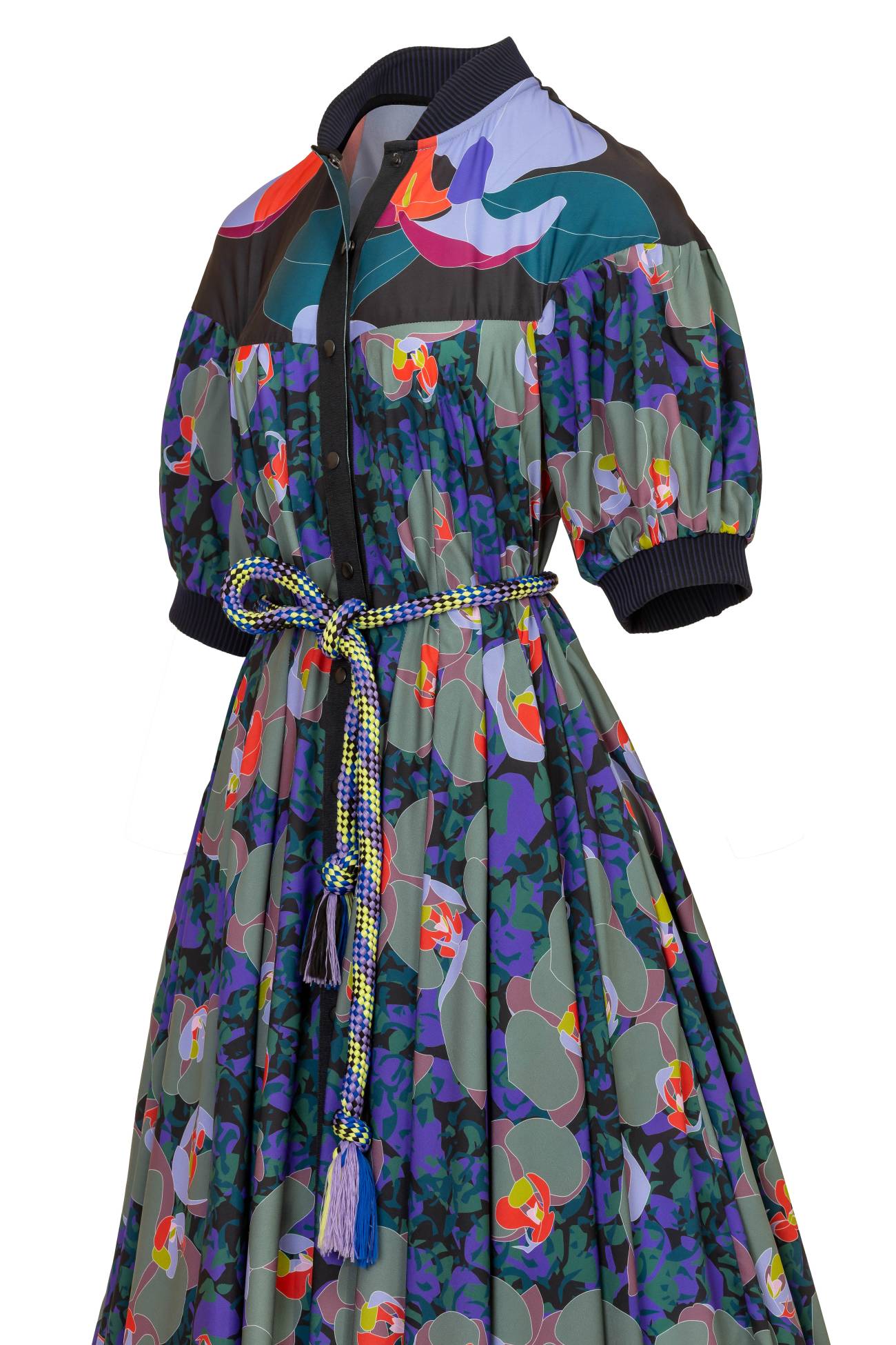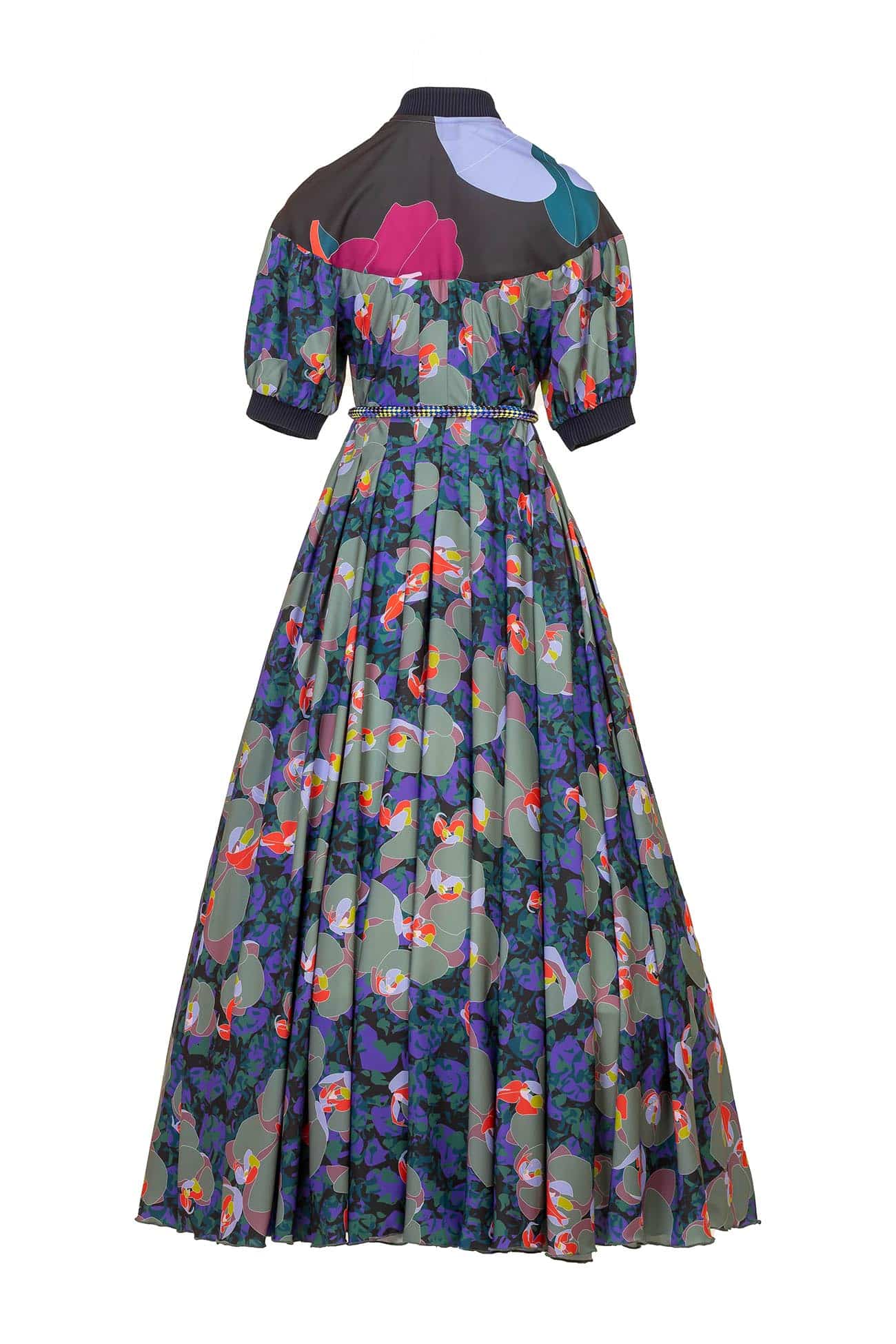 Maxi polyester printed box pleated paneled shirt – style dress with contrast details
