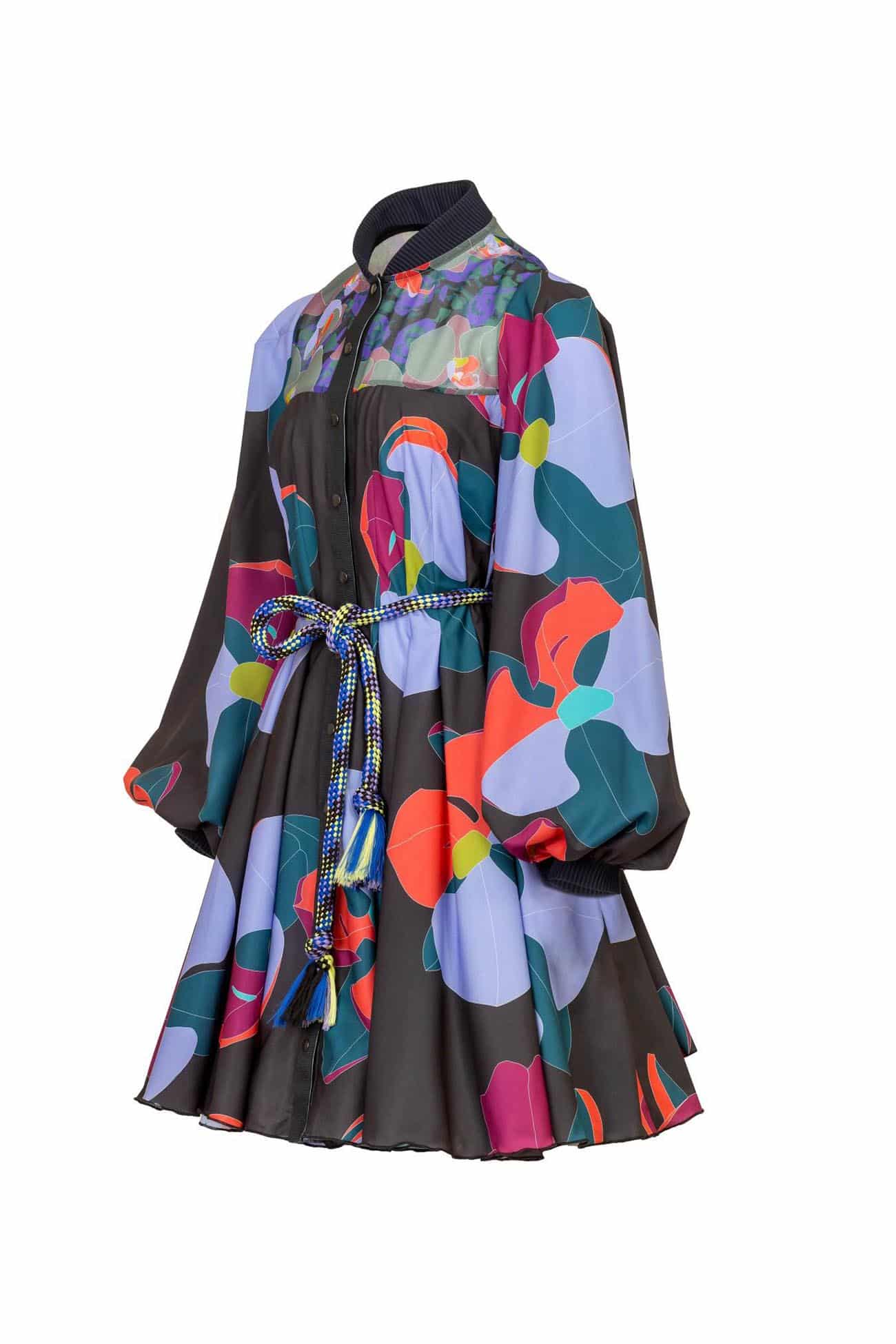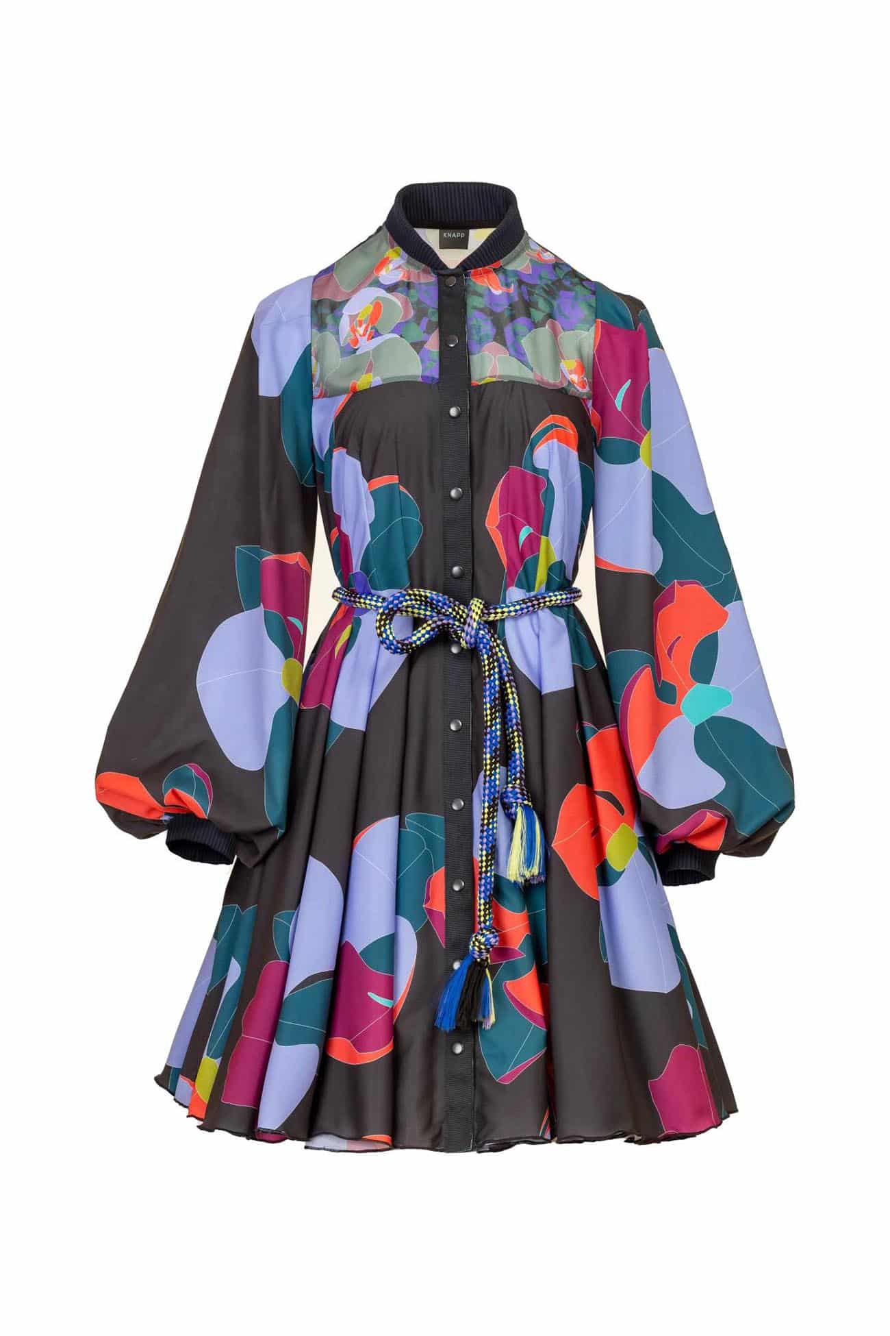 Mini box pleated paneled shirt – style dress with contrast details